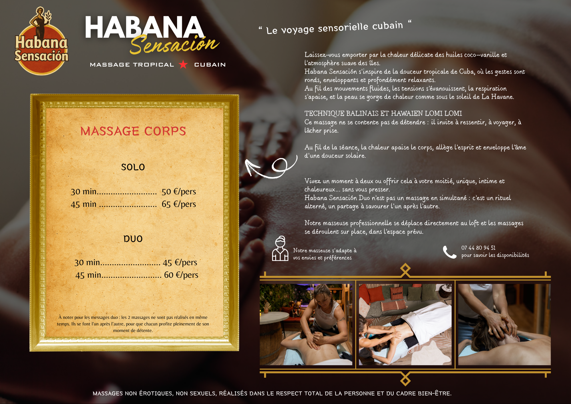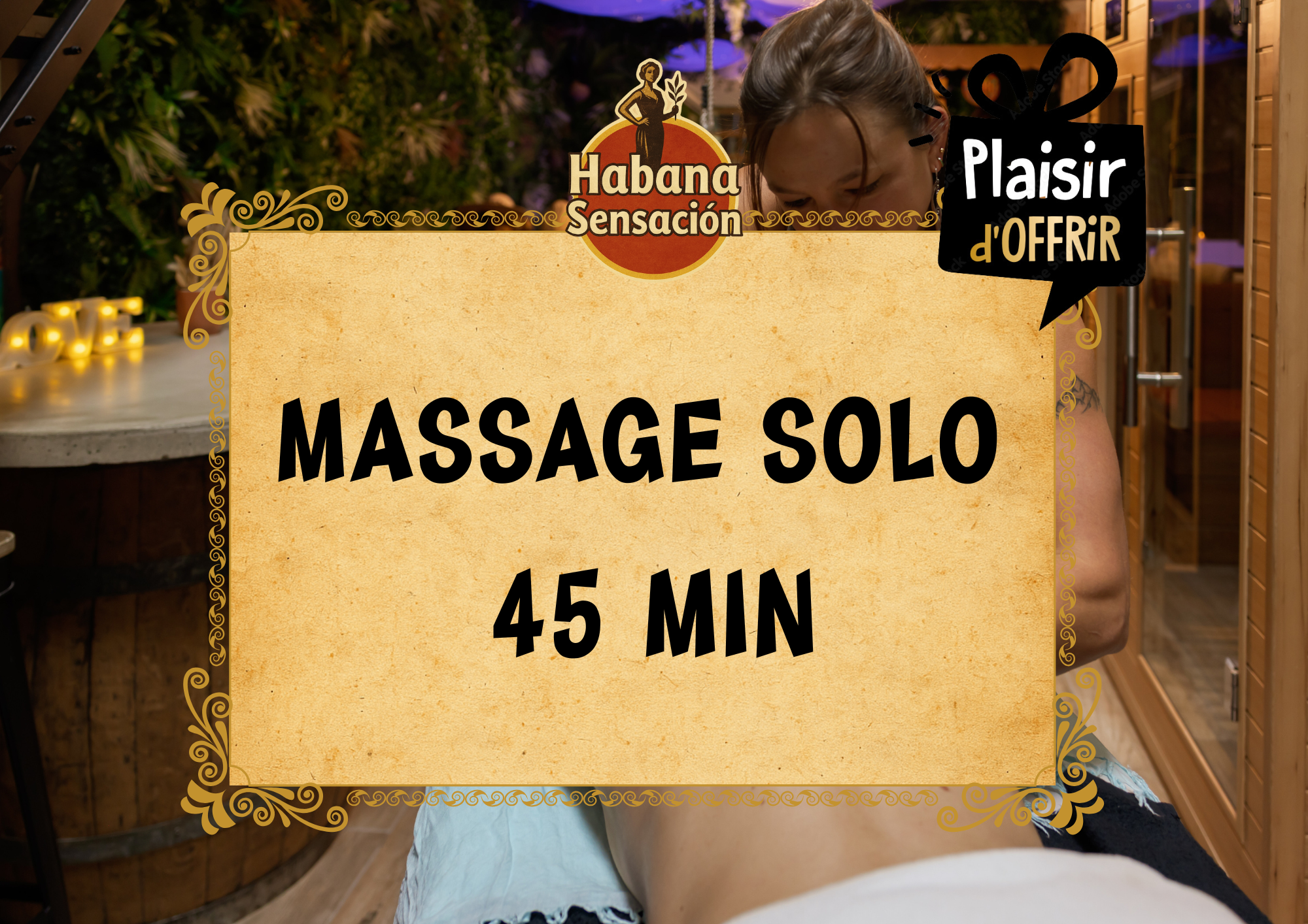 MASSAGE SOLO : 45 min -> 65 € / personne